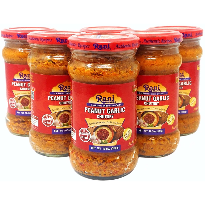 Rani Peanut Garlic Chutney 10.5Oz (300G) Glass Jar, Ready To Eat, Pack Of 5+1 Free ~ Vegan | Gluten Free | Non-Gmo | No Colors |