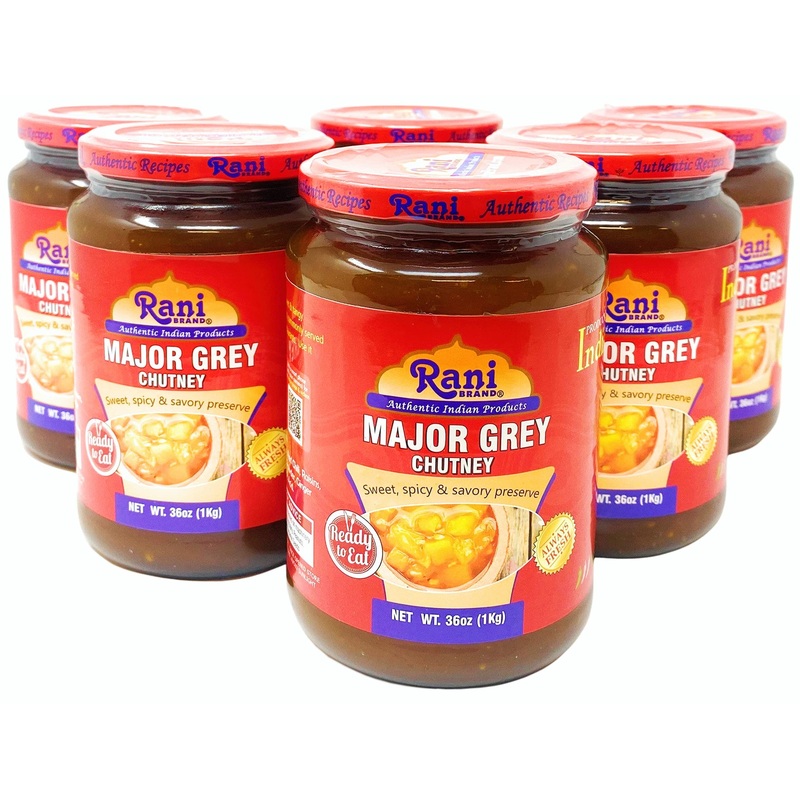 Rani Major Grey Mango Chutney (Indian Preserve) 36Oz (2.2Lbs) 1Kg Value Pack, Glass Jar, Ready To Eat, Vegan, Pack Of 5+1 Free ~