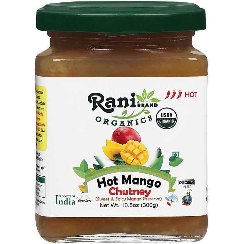 Rani Organic Hot Mango Chutney (Spicy Indian Preserve) 10.5Oz (300G) Glass Jar, Ready To Eat ~ All Natural | Vegan | Gluten Free