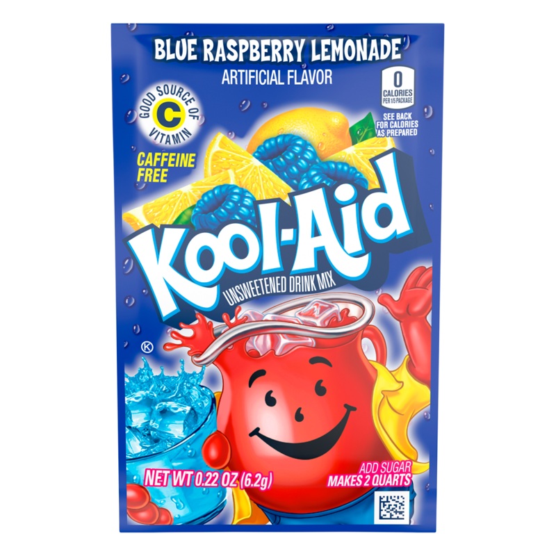 Kool-Aid Artificially Flavored Blue Raspberry Lemonade Unsweetened Powdered Drink Mix is a delicious way to stay hydrated. This unsweetened powdered drink mix makes it easy to prepare a tasty Blue Raspberry Lemonade drink. Just mix it with water and sugar